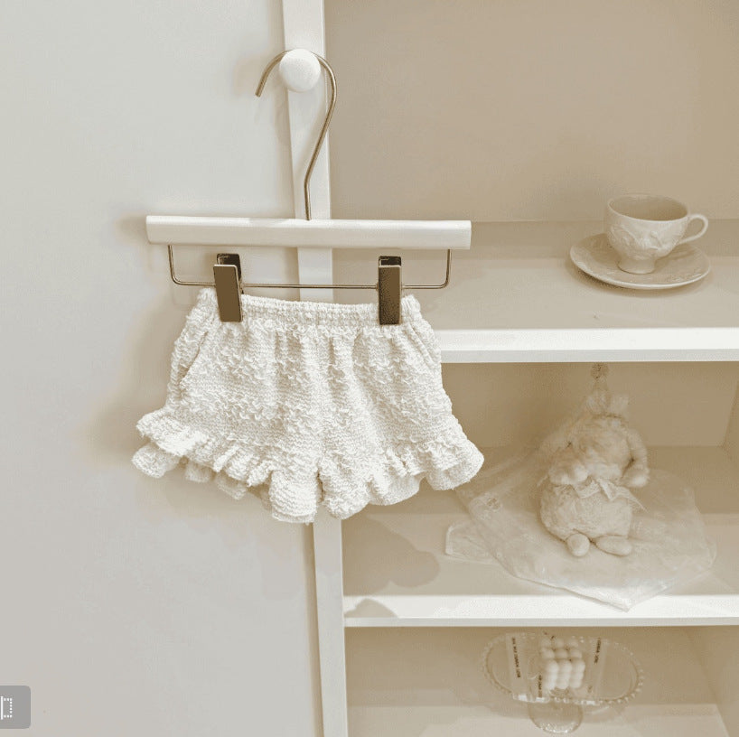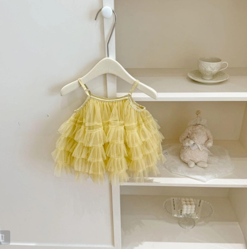 女童夏季甜美蛋糕吊带上衣+杏色泡泡短裤套装