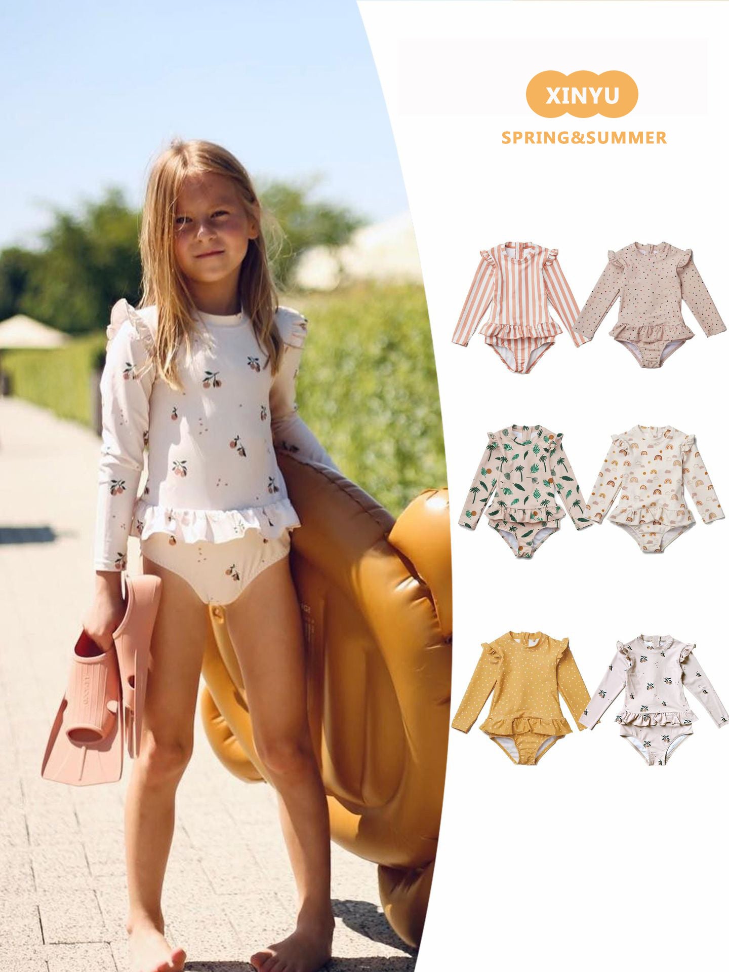 女童长袖防晒碎花连体泳衣,采用高效UPF防晒面料,全面保护娇嫩肌肤免受紫外线伤害。长袖设计提供额外防护,同时碎花图案增添活泼气息。连体款式穿脱便捷,贴身剪裁确保运动自如。面料透气快干,适合海滩、泳池等多种水上活动。专为儿童设计,兼顾安全防护与舒适穿着体验。