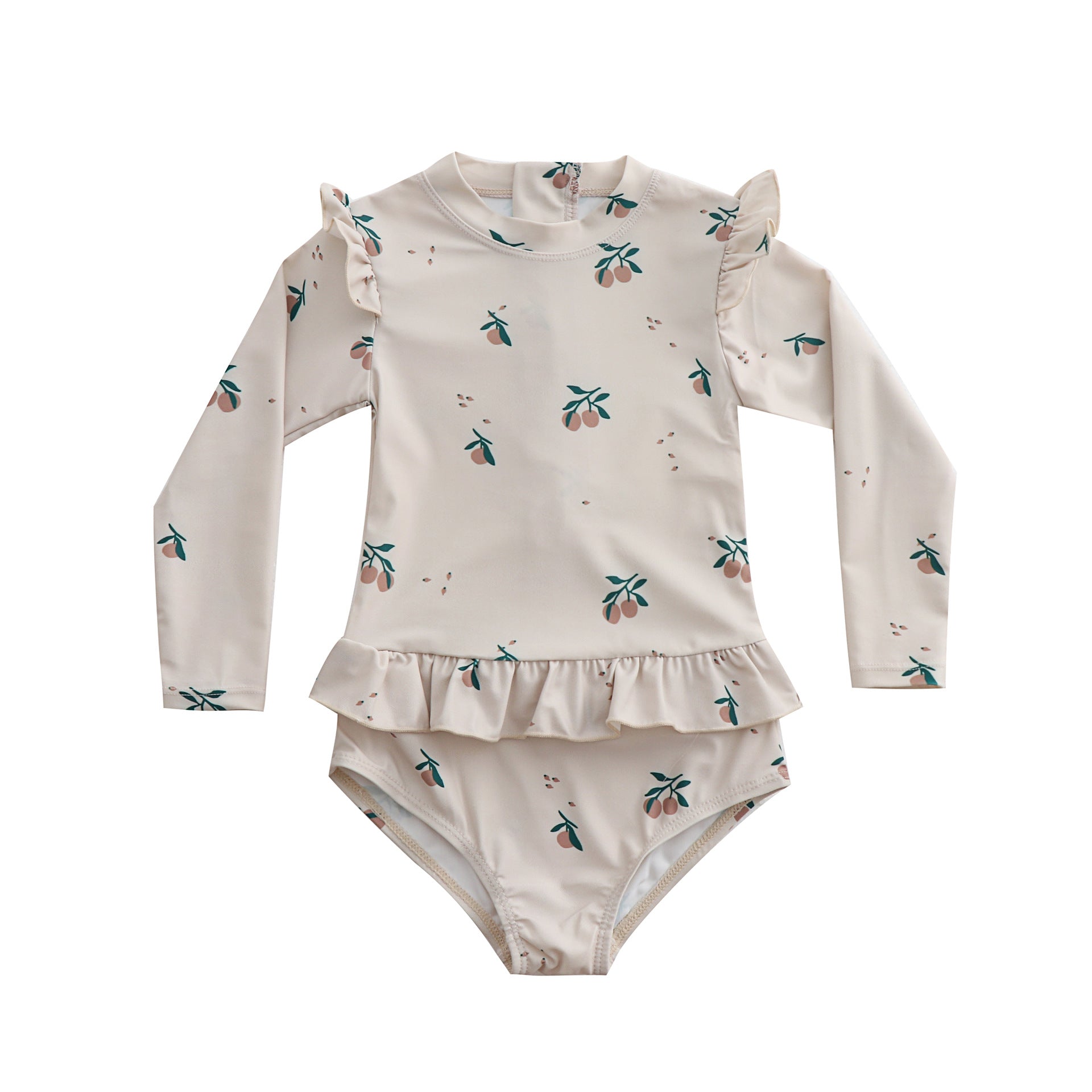 女童长袖防晒碎花连体泳衣